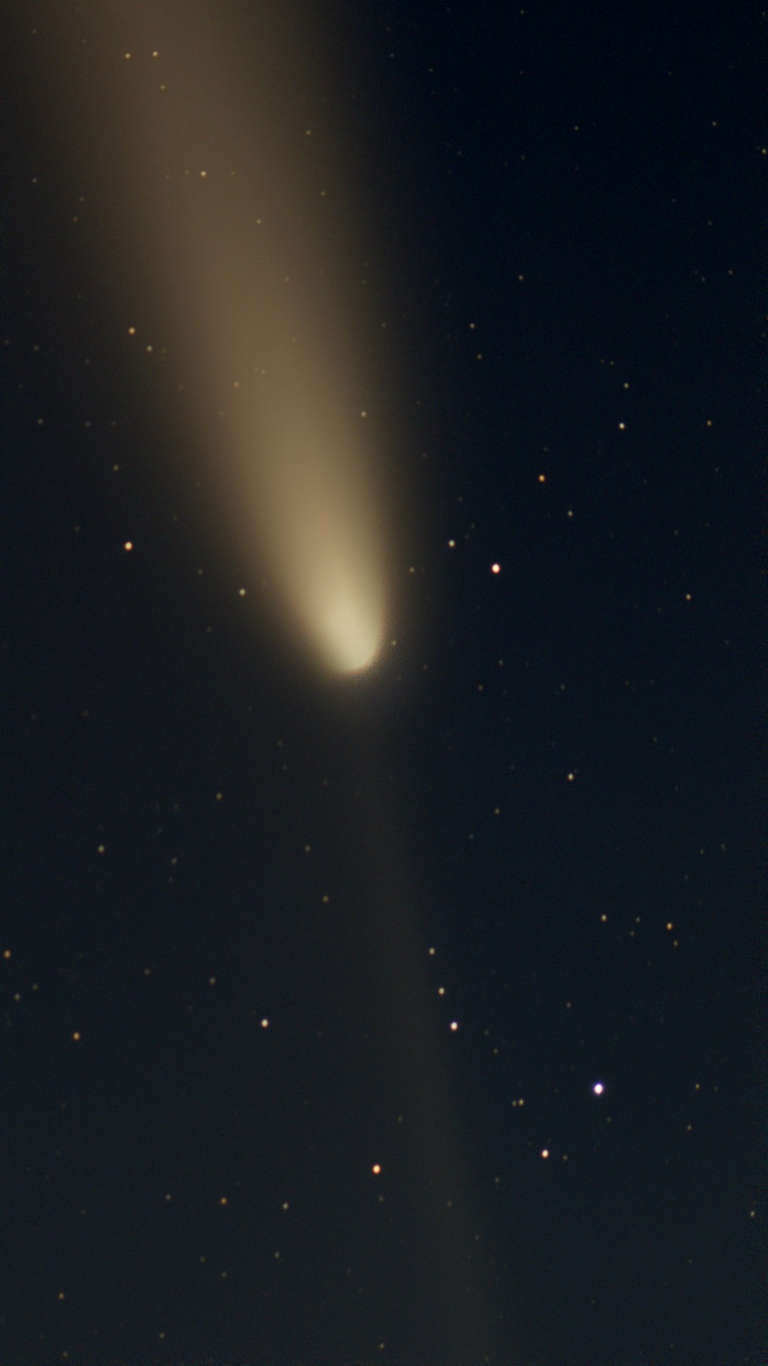 A bright comet from the outer solar system showing nucleus, coma, and tail. Demonstrates orbital mechanics, sublimation, and solar wind effects.